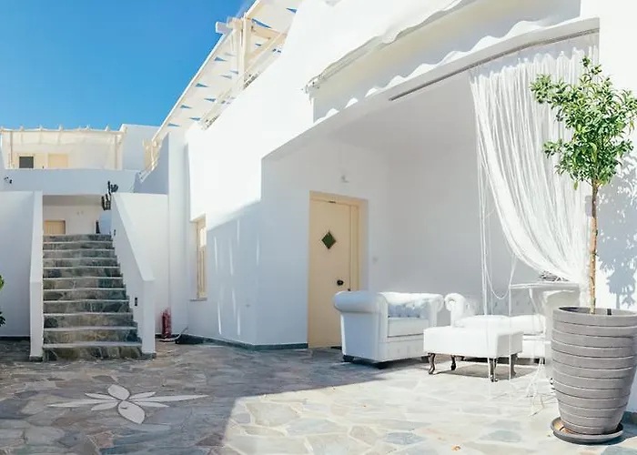 4つ星The White Suites アダマスホテルはパナヒア・トゥルリアニから3.8km離れた所に位置し、テラスをを提供しています。 駐車場もあります。